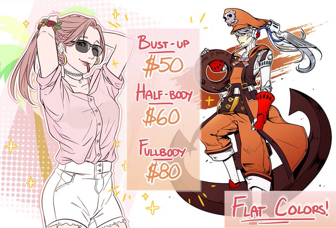 I don't really have any personal art to post on here to keep my twitter active, but here are some recent commissions i enjoyed drawing a lot ( ;; ´ ▽ ` )