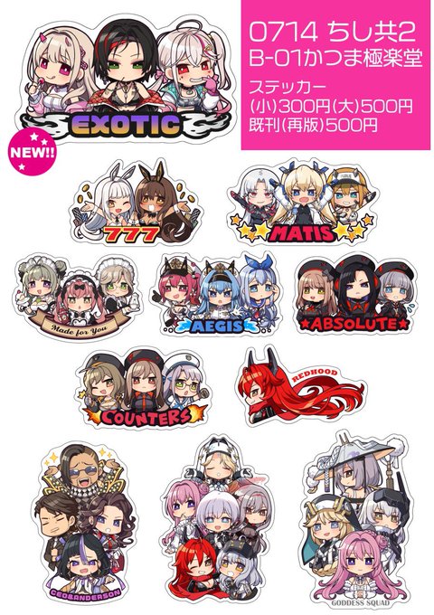 取り急ぎですがお品書き出来ました…ステッカーはイージスだけ欠番になります。新作の購入制限はとりあえずなので状況を見て変更する可能性があります。よろしくお願いします!!