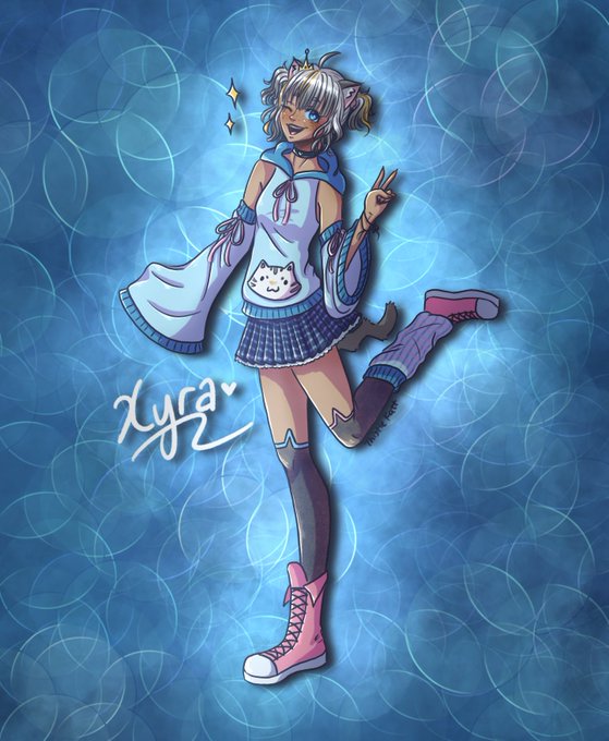 First bout of Xyra catgirl princess official art, 200 follows here on Twitter and/or Twitch and she will be streaming live on my channel ✨🐱