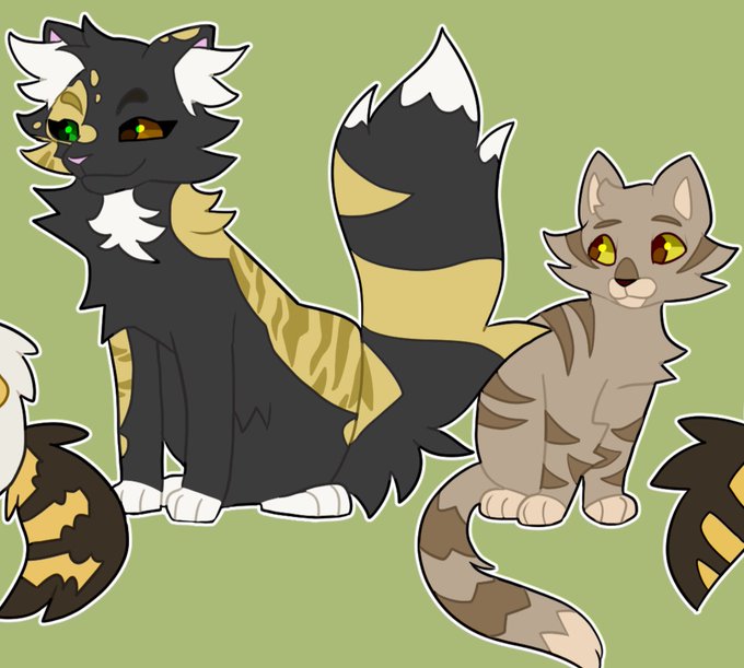 halfshadow + smallstripe are petalsong's parents! and then we got otterfang + icetail as winterwing & and sunheart's parents (i havent drawn them together yet 😞)