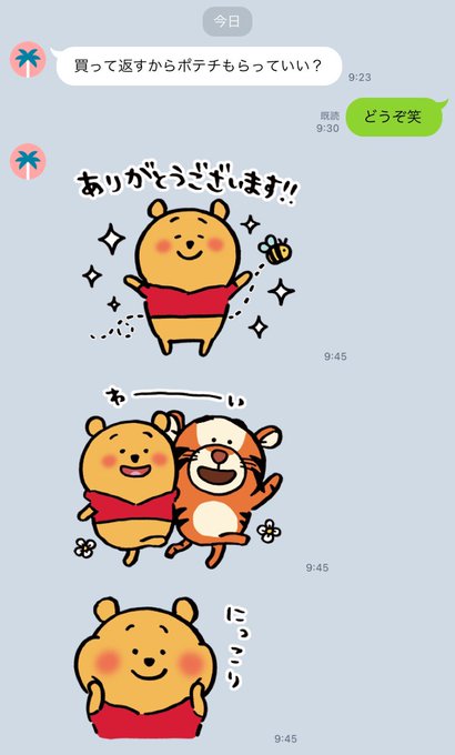 朝の弟とのLINEだけど、ポテチでこんなに喜ぶ20歳男っているんだwプーさん効果もあってちょっと可愛く思えた…w