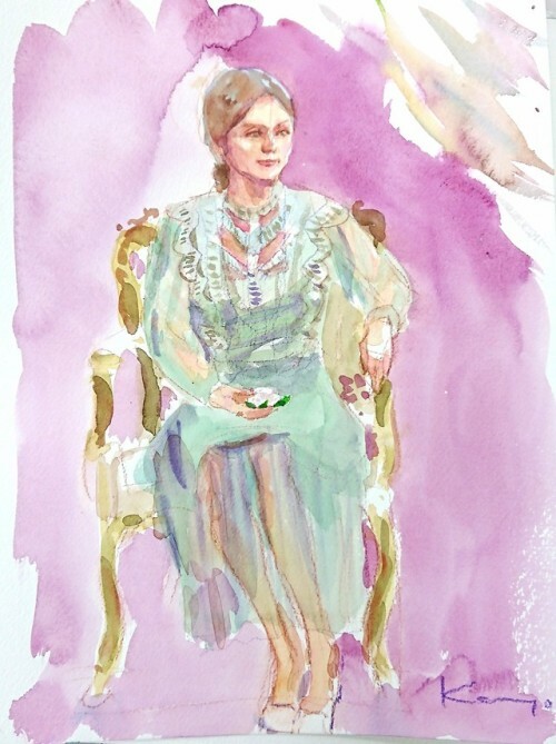 https://t.co/viHI0ppbNd 水彩・パステル人物画講座。 水彩手順をデモ。たくさん重ねるのでいつもの絵より茶色くなった。