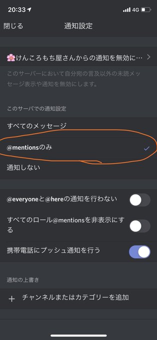 というわけで、既にDiscordを使ってらっしゃる方で、一部のサーバーの通知について困っている人は、そのサーバーでの自分の通知設定を確認してみてね。