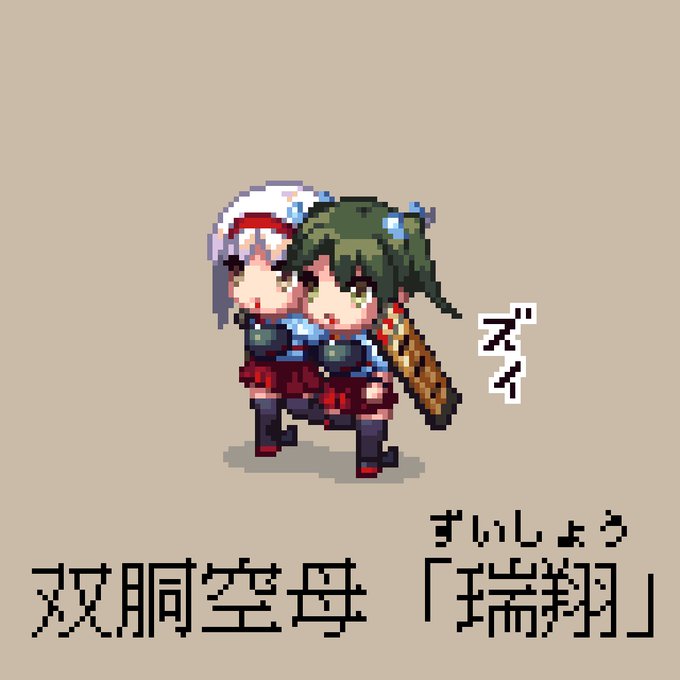 艦これにおける双胴船(二つの船体を繋いだ船)の有用性を考える。 #ドット絵 #pixelart #艦これ #翔鶴 #瑞鶴