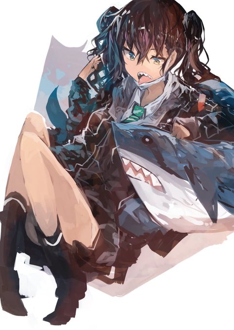 @AkariHoshizawa Monster girls/shark girls with a bit of a hatsune miku cuteness. I like twin tail characters and the appeal of looking aggressive outside but being soft inside. Shark teeth supremacy!!