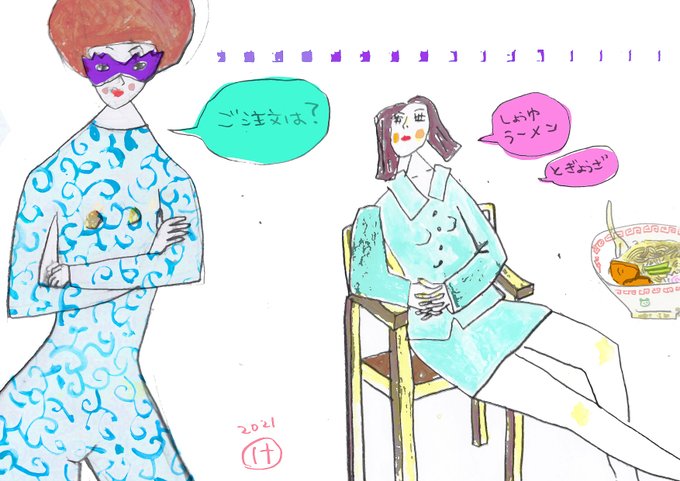 おはよー。本日の絵「ラーメン屋にて」