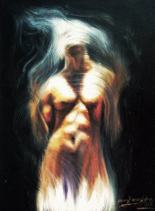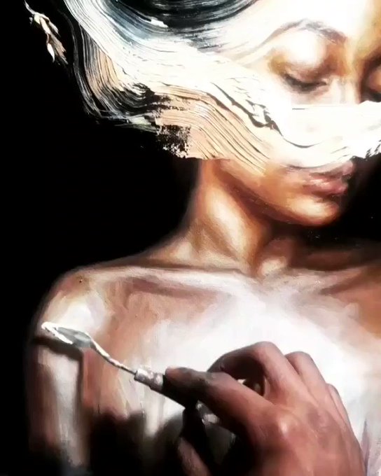 Most times I spend hours upon days painting the figure realistic, but when I reach this part of the painting process, I completely let loose and implement some elements of abstraction. At times I destroy or mess up the painting, but to me I see it as adding part of my soul.