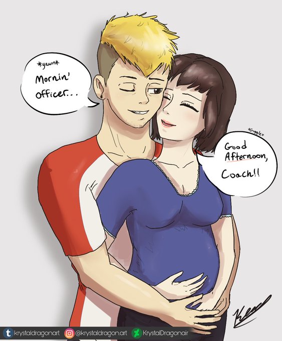 Ryuji and Makoto having their first one on the way :,) Ryuji is currently a gym coach (or pe teach, can’t decide one or the other lol) and Makoto became a police commissioner. Soon to be papa slept through most of the day pppfffttttt