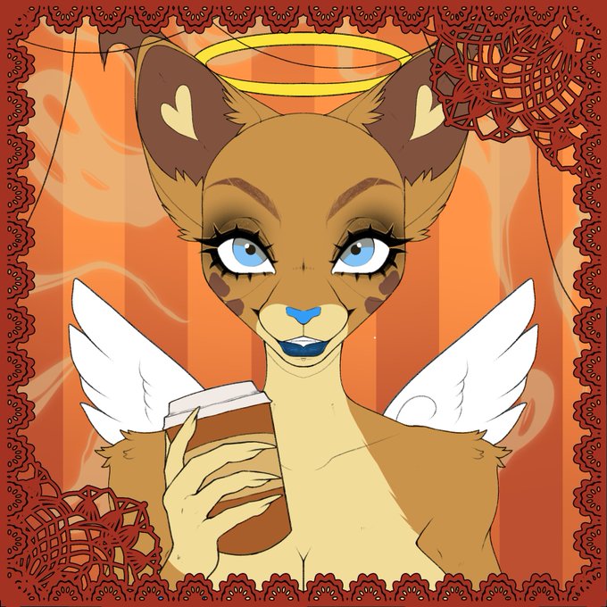 Crying over this commission I just received from @notyoursparrow 🥹 Just, look at how cute Kabuki is with her big Starbucks drink
