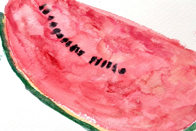 【食べ物スケッチ:2021.7.24】 ○スイカ 今年初スイカ。志村けんの真似をせず、ゆっくり食べました。 #イラスト #スケッチ #日々描く #食べ物スケッチ #透明水彩 #スイカ