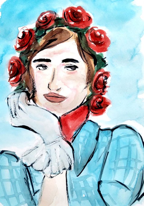 20217.28:朝のデッサンvol 82 朝に自分で選んだ画像を10分。特にテーマなど決めず、自由に描いてます。 お花の帽子を被っている女性。 #日々描く #イラスト #スケッチ #落書き #透明水彩 #デッサン