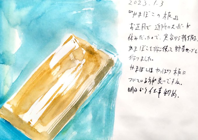 【2023.1.3:かまぼこの板】 かまぼこはやっぱり板についている方が良いですね。 #日々描く #イラスト #絵日記 #かまぼこ