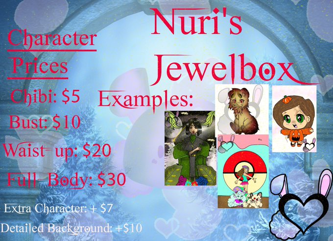 @SweetBerrySakky Here are my prices and some of my work! I would love to draw something cute for you!!❤️