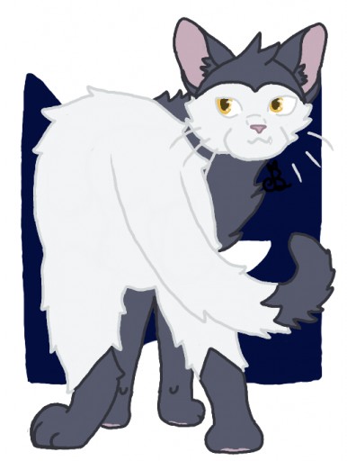 Moonmask! My OC! He's a scruffy tom with a snaggletooth from Shadowclan!