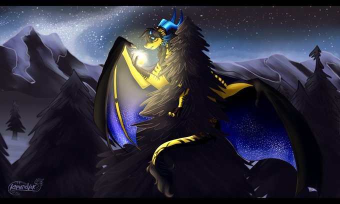 #scene #dragon #dragoness #yellow #star #mountains #night #digitalart #commission #scenery #illustration