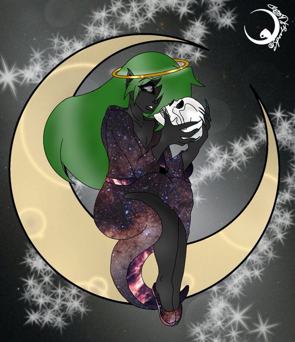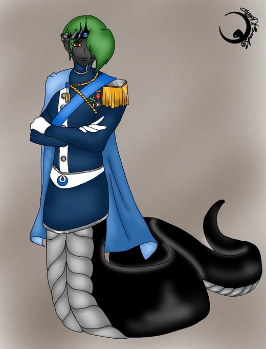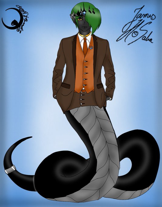 @rosy_maple_moth My most beloved OC, Jim. An unwanted naga viscount turned moon god who uses lovers and kids to fill the void