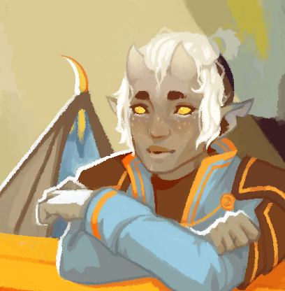 It’s so fun haha! I’ll never turn down a chance to talk about my boy, his name is Brim (Brimstone Greenbriar) and he’s a disaster warlock rogue who manages to be cranky and awkward despite a charisma of 20. I’m currently working on a proper ref!