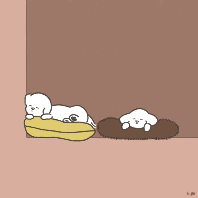 #2匹のビション 2021/08/10 かべぎわ #ビションフリーゼ #犬 #イラストレーション