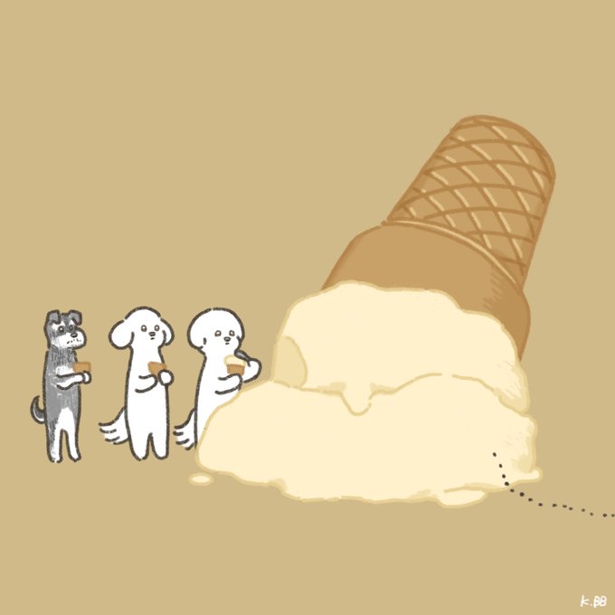 #2匹のビション 2021/08/25 セルフアイス #ビションフリーゼ #犬 #イラスト