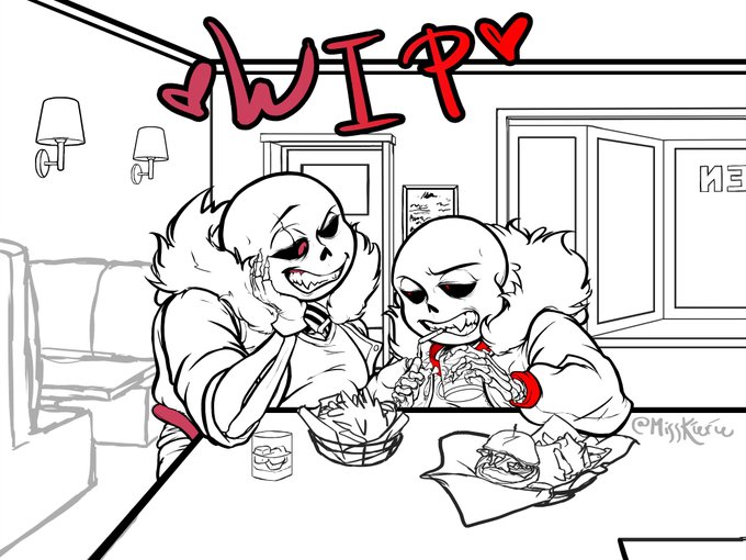 big WIP. Jam(my lustfell!sans) meets Red! picture one of five. it'll be a while till they're all done, so be patient! #undertail #lustfell #sans #underfell