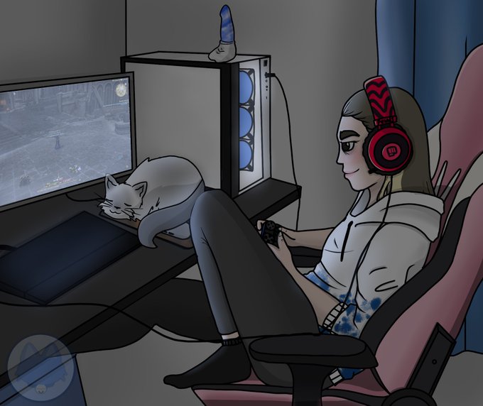Commission done! My friend Wanted a commission witch was “Sabishii in her natural habitat” ✨ Playing FFXIV and chilling !