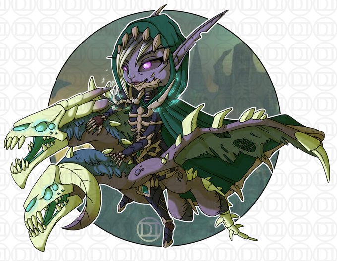 This is my Forsaken Rogue, Skurra Grimstalker. She cannot remember most of her life while she was alive and loves riding on the chimera in Maldraxxus as she finds it quite relaxing.