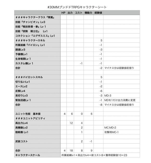 #30MMブンドドTRPGキャラクターシート