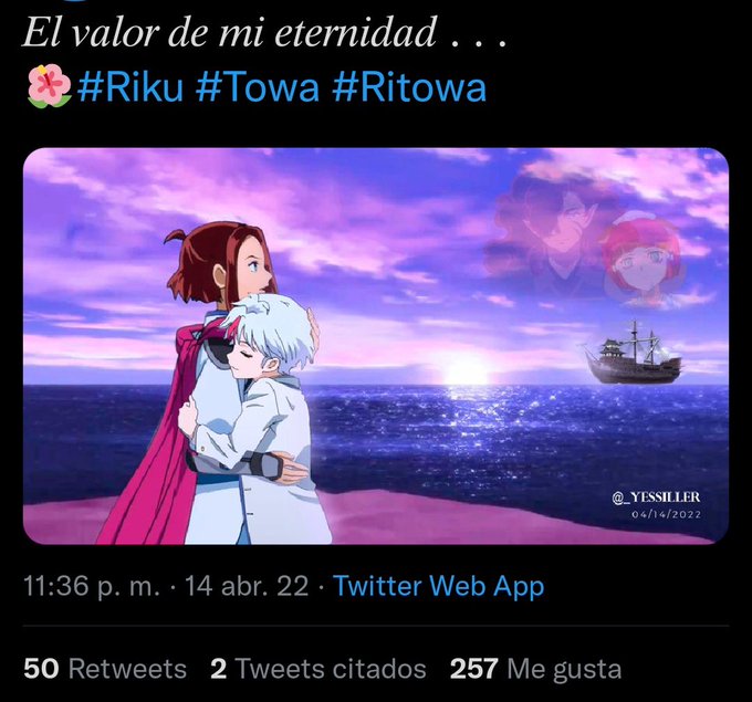 El amor mutuo también se refleja en las miradas. Tanto Towa como Setsuna se miran una a la otra llenas de amor y cariño profundo. Almas gemelas que se separaron, se reencontraron a pesar de la barrera del tiempo y se amarán por siempre. ❤️🤍💜💙