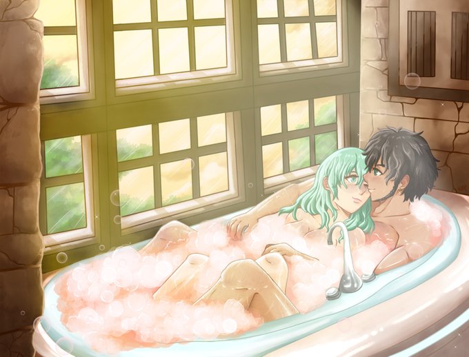 Here's some soft happy couple bathing times uvu 🛀🧼✨💛🦌💚