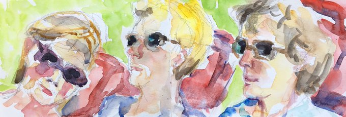 My three companions musing on the crossword #thedailysketch #sketchbook #quicksketch #peoplesketching #urbansketchers #onholiday