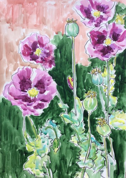Last self seeded poppies still standing after ferocious winds #thedailysketch