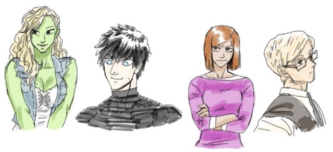 @AeroViro I usually make OCs in groups so here’s the first ones i made back in 2013 (the art tho i did last year) and then my more current squad that i’ve been hyperfixated on since i made them in 2017 (this art being from earlier this year)