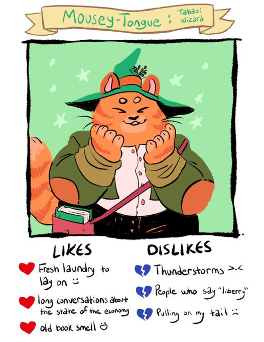 Day 7: Meet Mousey-Tongue! He’s a tabaxi wizard looking for a fellow intellectual who enjoys a cozy mug of tea and ear scritches. Will you fall in love with him right meow? >w< #dnd #inktober #inktober2018