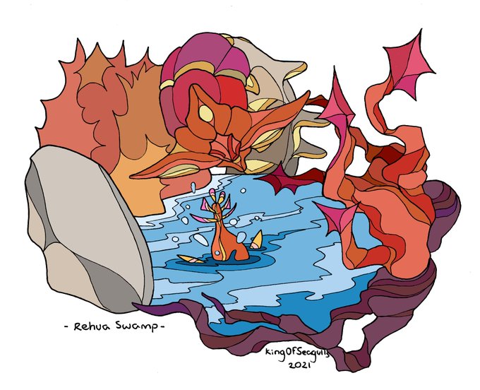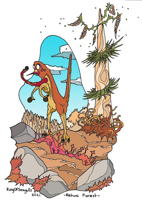@cmkosemen Work of my own all from the same planet of Rehua. Started pretty clearly trying to ape your work but I've grown a much bigger fan of leaning into colour and shape rather than pure artistic realism.