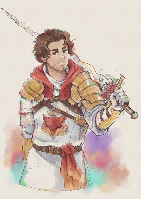 this is a beautiful commission done by talented artist @topbanana_jam i wanted myself kind of in the style of #TriangleStrategy i think she nailed it while also having her own wonderful artistic voice too. check her out!