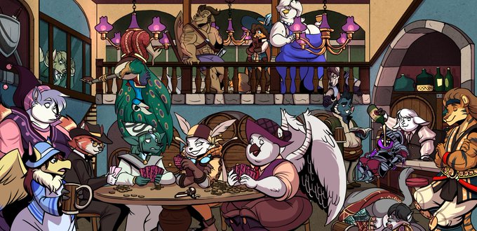 I have WAY too many people to tag in here, But this was an AMAZING com that @volkenfox and @ViciousDisco did for me! A grand RPG tavern, just before going out on an adventure!