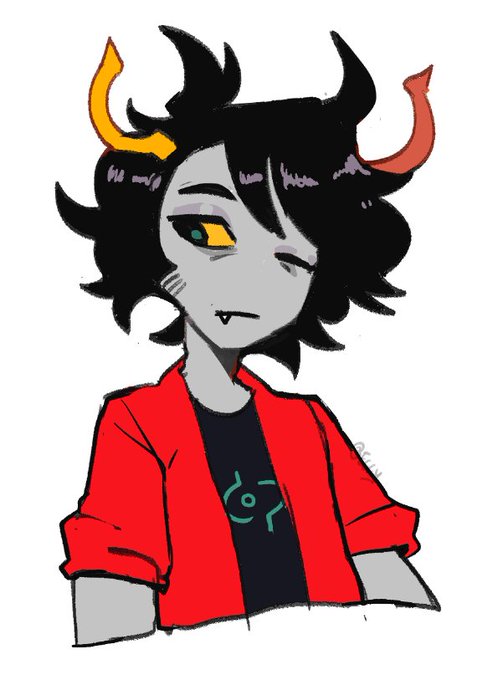 @Clownfcr Him,,,his name is Vusrax Cocor, his lusus was a two-headed crow and he's an inventor, he uses old junk to make new dangerous shit
