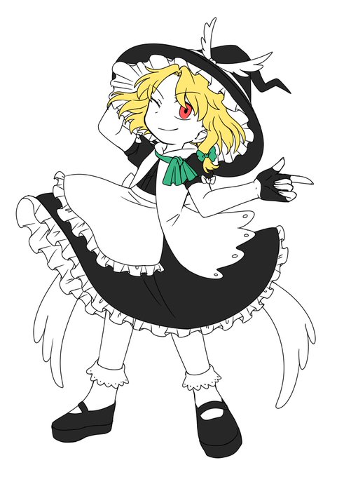 あと差し色の緑は原作魔理沙には中々無い色だから