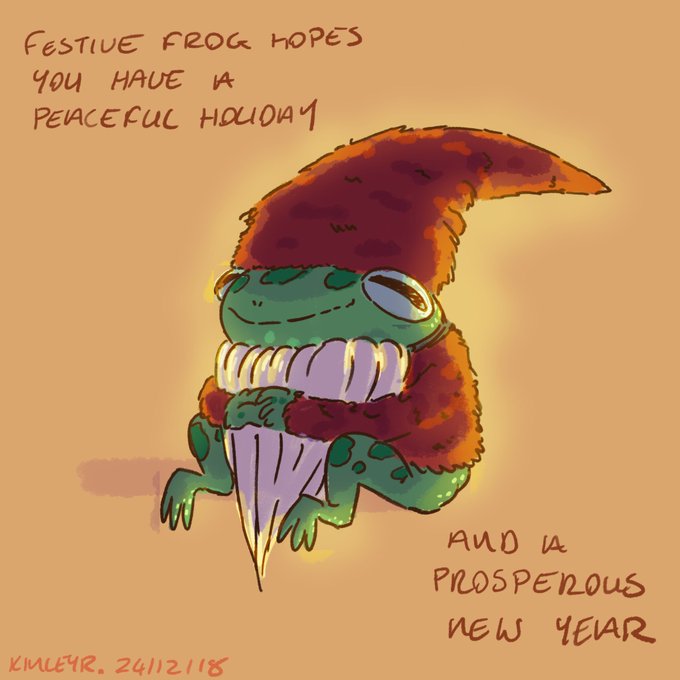 Just a note from festive frog who hopes you have a peaceful festive holiday #digitalart #frog