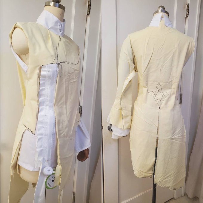 Started on Xingqiu coat. This is my nasty mockup😭😂
