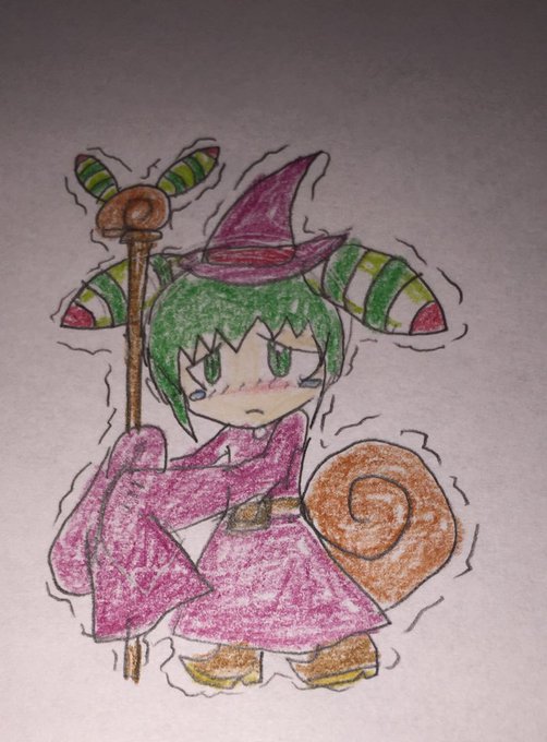 #うちの子版深夜の真剣お絵描き60分一本勝負 お題【職業(ファンタジー系)】 名前:レウコマイ 体力あまりないので魔法使い、杖は護身用