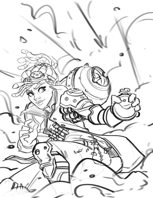 Start / Finish (with bonus original sketch since that's technically how it started). I've been experimenting with less defined lineart at the start but I still find it so hard to design while painting