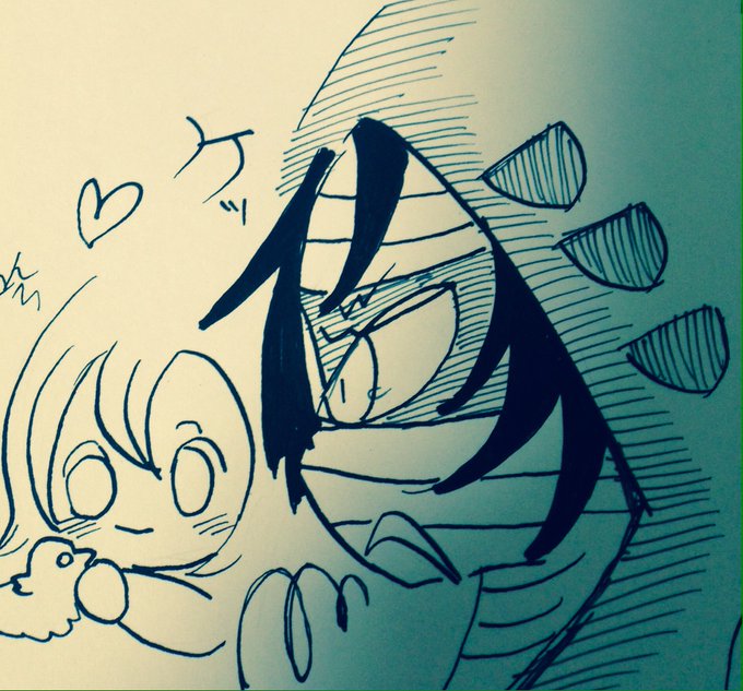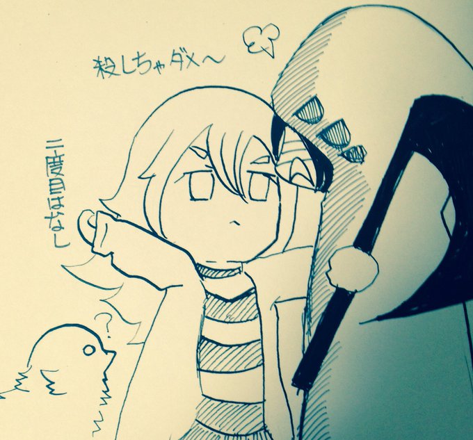 #殺戮の天使深夜のお絵描き60分一本勝負 お題『対決』 小鳥VSザクレイ あともう1枚載せます
