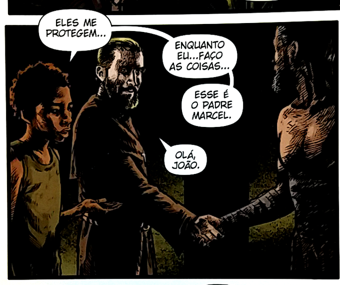 E também temos o Padre Marcel. Infelizmente ele também sofre da mesma falta de desenvolvimento que o garoto. O que é uma pena porque, aparentemente, deduz-se que é ele quem mantém todo mundo unido e sano na resistência, e evita de que alguém cometa uma merda muito grande.