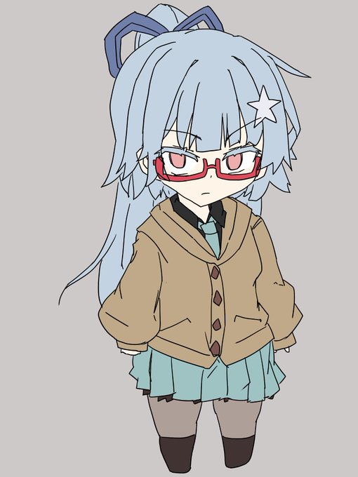 あと、もちだいふく君が代理で描くときの葵ちゃんの髪留めは青紐だけど、切子式もち葵ちゃんは白リボンです。 私が最初描くときに間違えたせいだけど、黒リボンと対になってていいかなと…