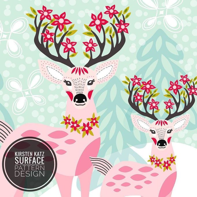 Merry Everything from my family to yours 😃 #kirstenkatz #christmasart #christmasartcountdown2017 #createchristmas #adventcalendarart #printandpatterndesign #blueprintshow #carddesign #illustration #christmasillustration #winterholidays #reindeers https://t.co/sPucVfn3Vl