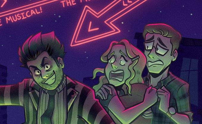 Gonna see @BeetlejuiceBway on Saturday night! I was so inspired that I manifested all my love for the show and cast into this poster! I can't wait to see this drop-DEAD gorgeous performance!! 🖤💚🖤💚🖤💚