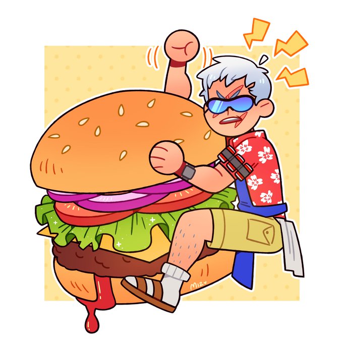 Grumpy Grillmaster 76 with a delicious burger~ ✨🍔✨