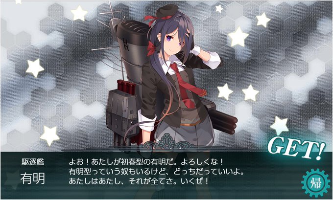 有明さん発見ー!ワーイワーイ(ノシ'ヮ')ノシ ボーイッシュな性格に反して中破での大変可愛らしい仕草や表情が最高ですね……( ˘ω˘)人 ̑̑ 有明さんの水着を見たいのもありますし、E-5での秋津洲水着mode捜索に加わってもらう予定なので演習艦隊へGO!( 'ヮ')ノシ