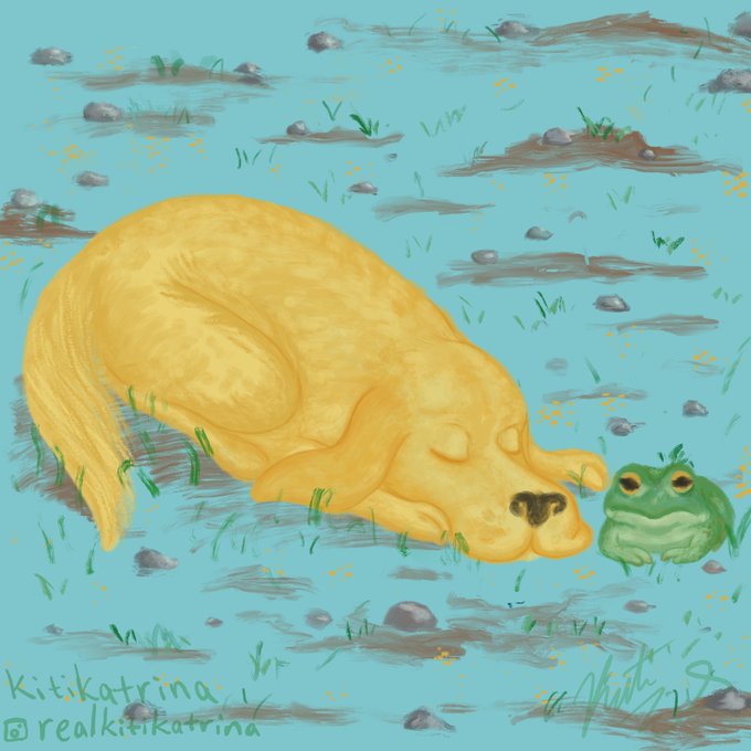 My golden likes to keep frogs as pets. We caught her sleeping next to one she caught the other day.